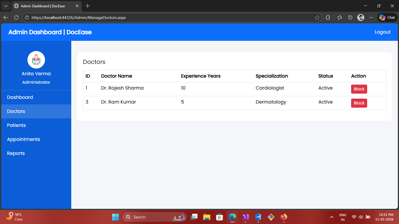 Manage Doctors – Activate / Block Doctors