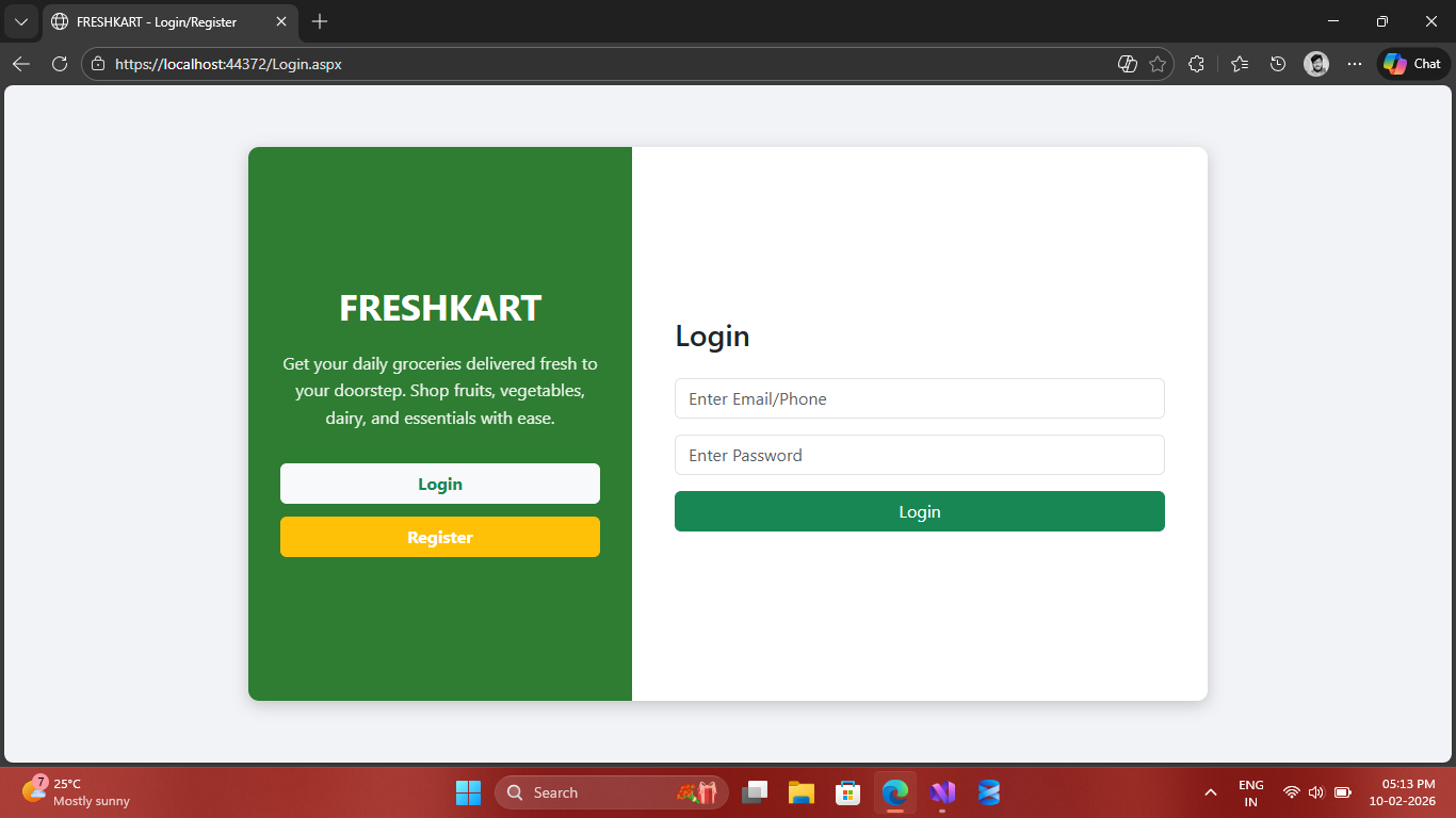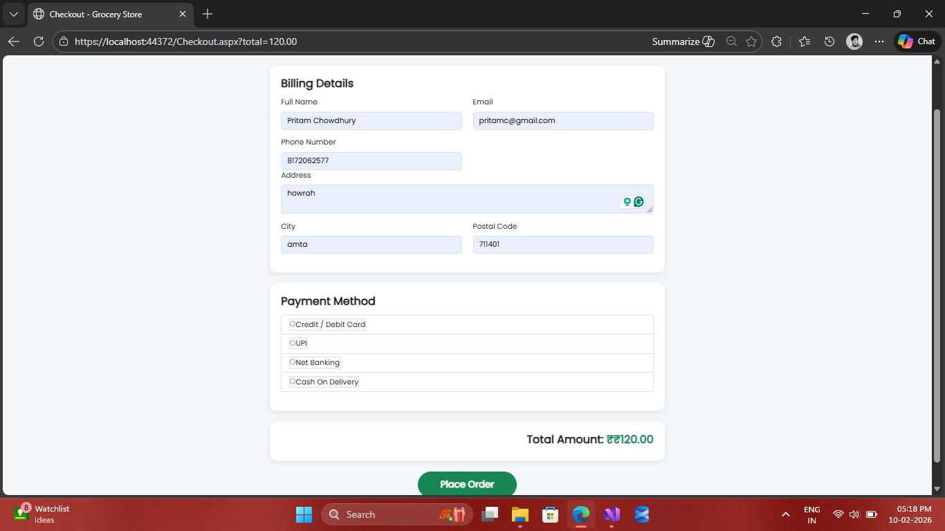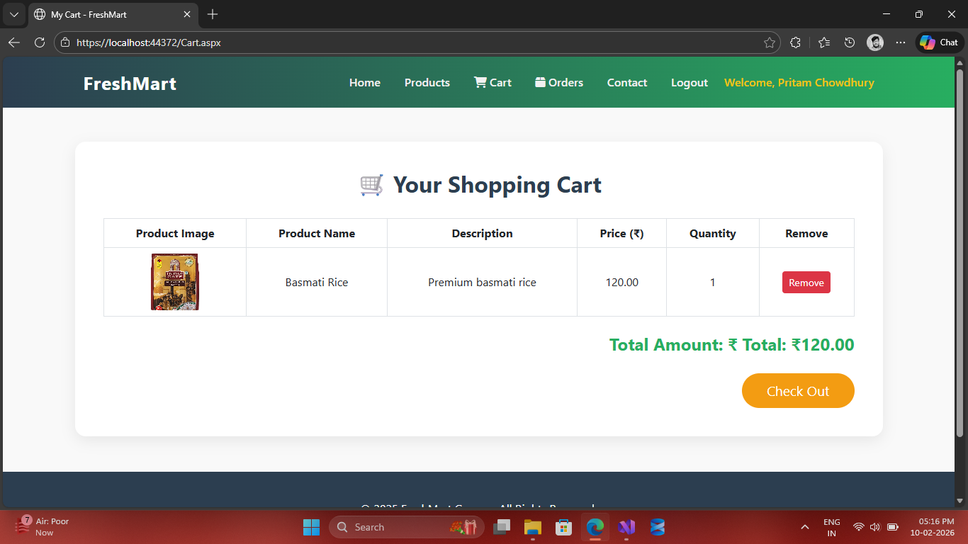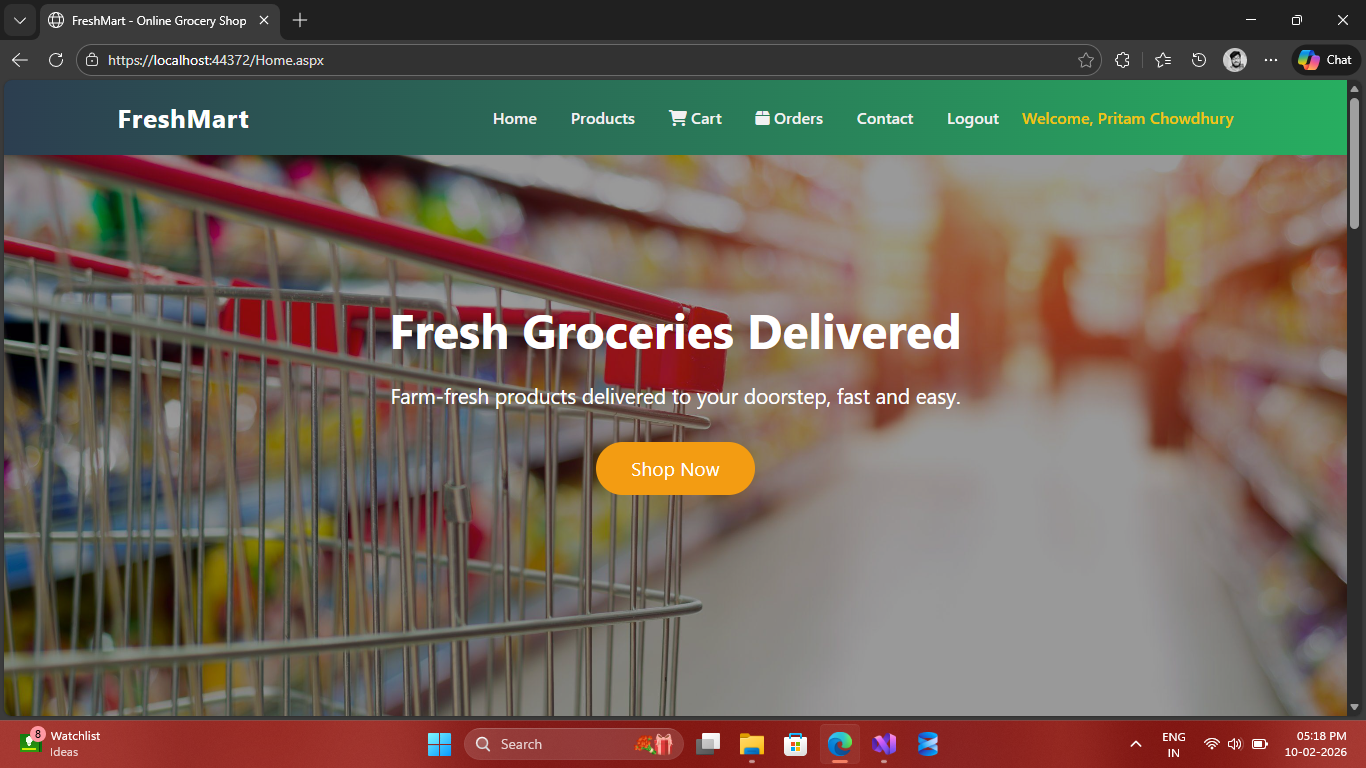 Complete E-commerce Grocery Management System built with ASP.NET Web Forms & SQL Server.