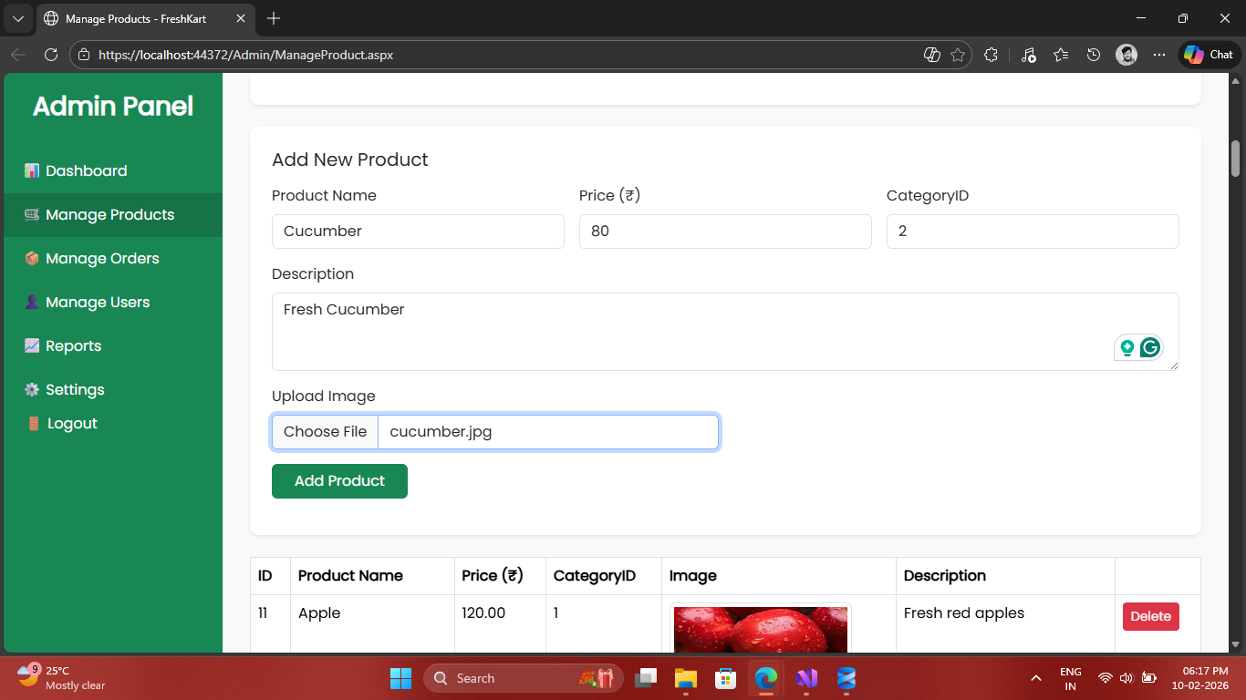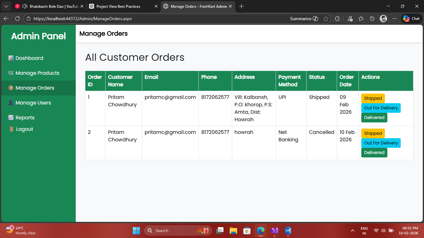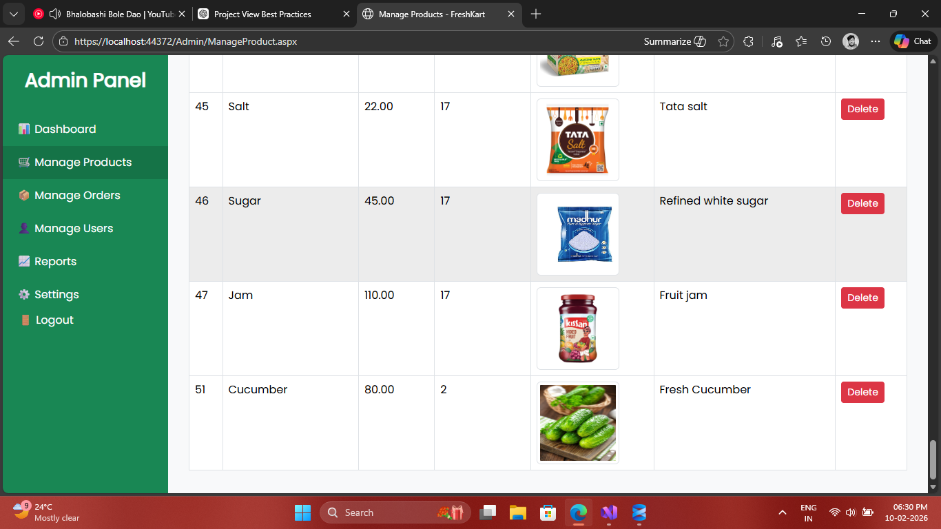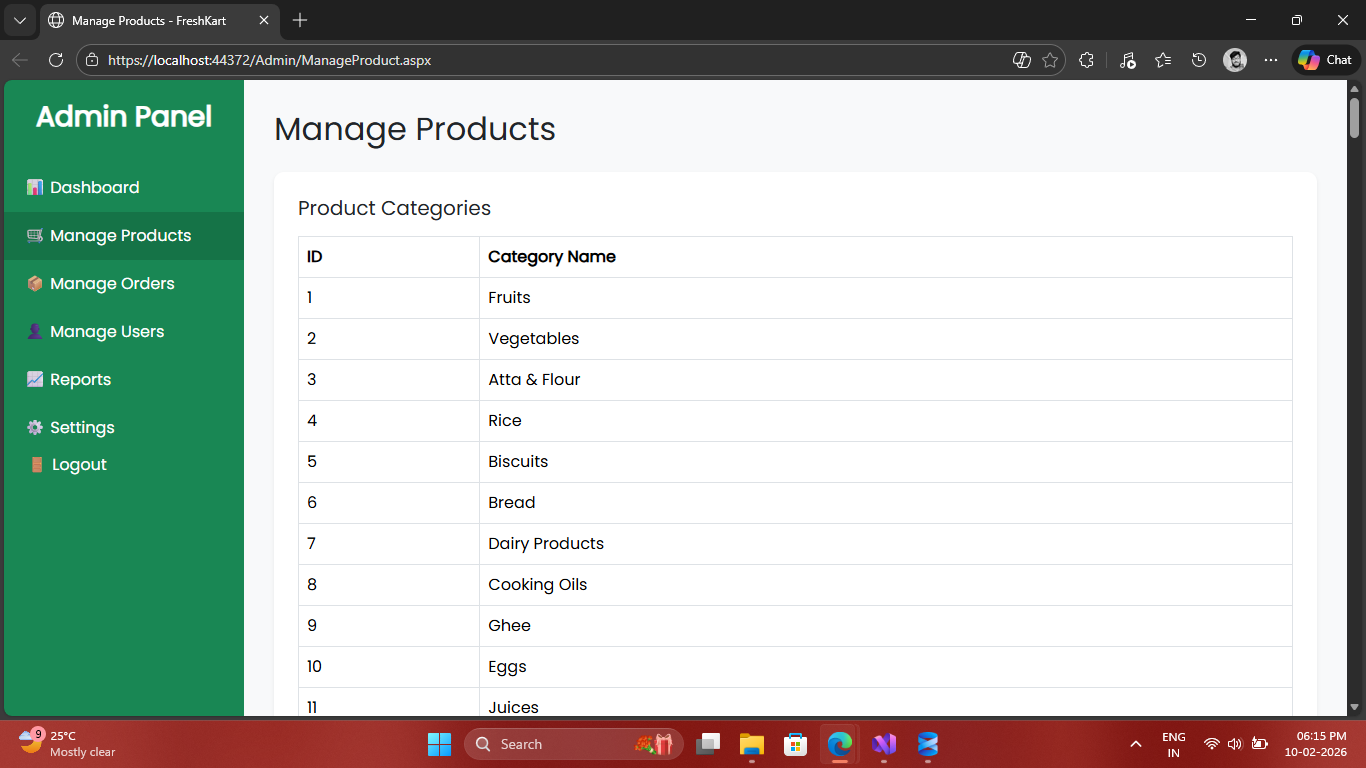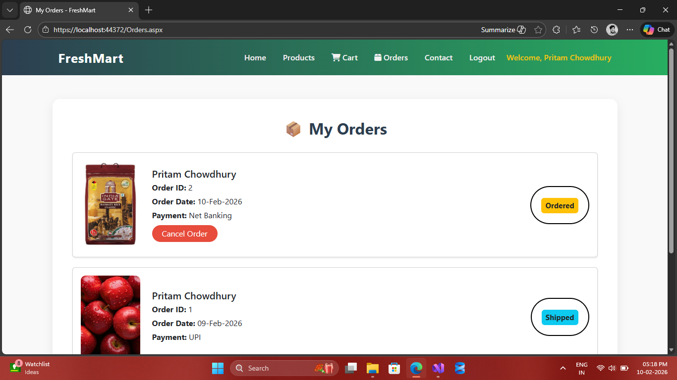 Complete E-commerce Grocery Management System built with ASP.NET Web Forms & SQL Server.
